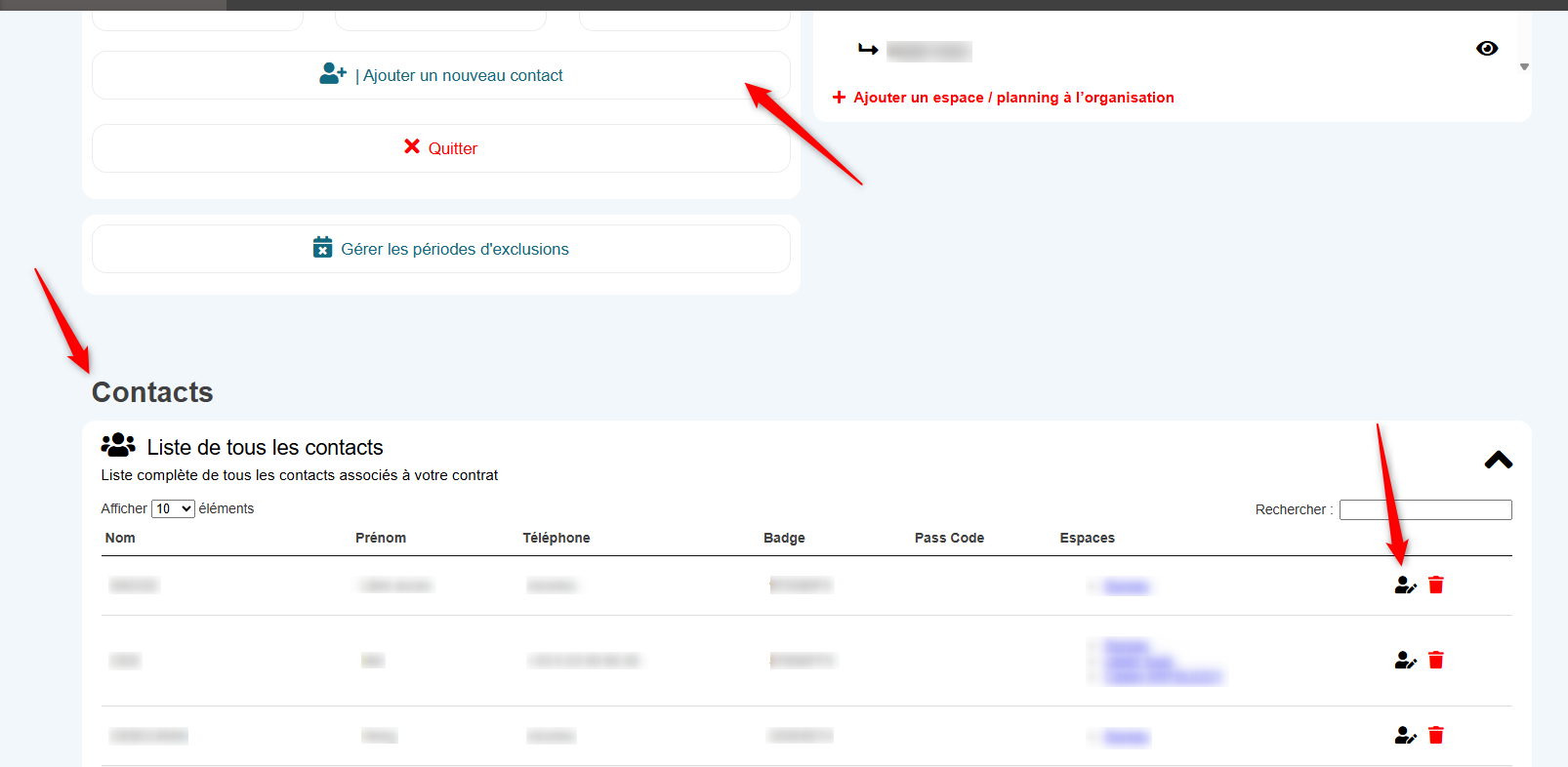 Sur votre tableau de bord, allez à la section "Contacts" puis sélectionnez la personne a qui associer un droit.