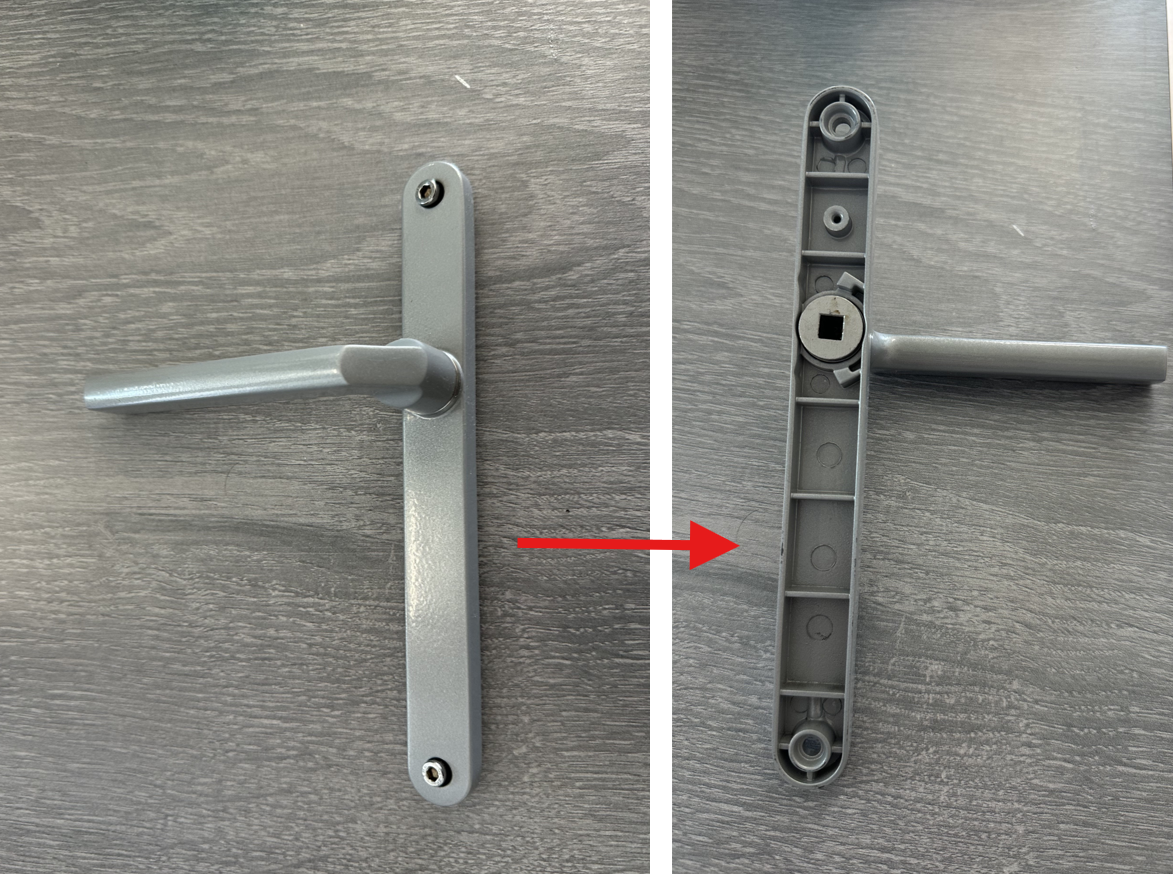 - Repérez les deux vis sur la face extérieure de la poignée.