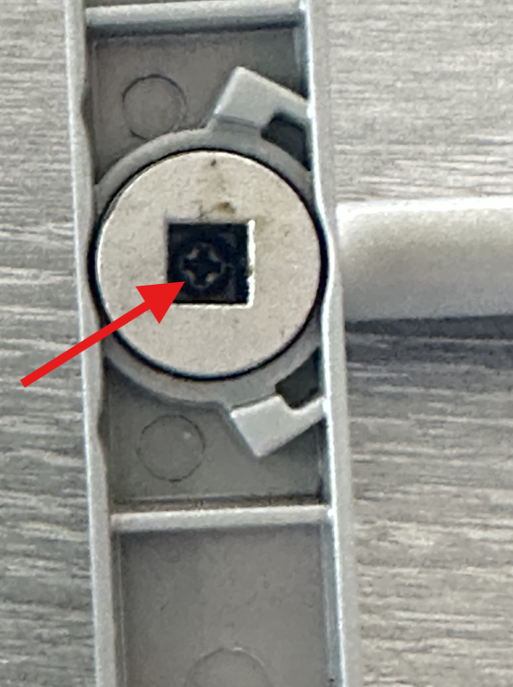 Une fois les deux vis retirées, vous verrez la vis centrale à l’intérieur de la poignée.